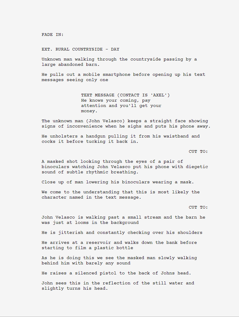 Finalised Screenplay.Will BusseyJul 14, 2024ShareMy script for my short film is below.All again is subject to change as this is a draft that can be later edited.12